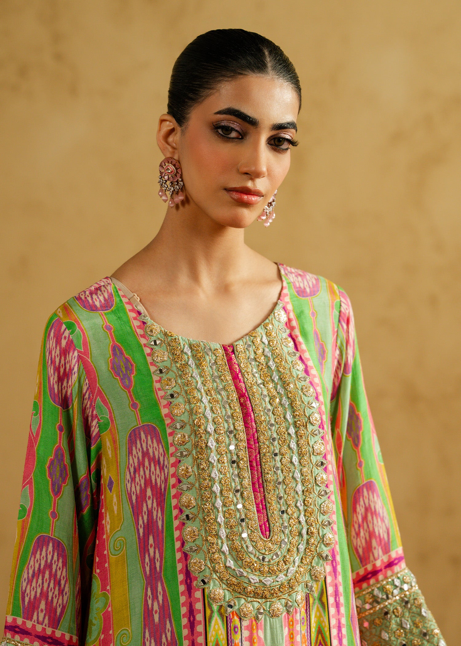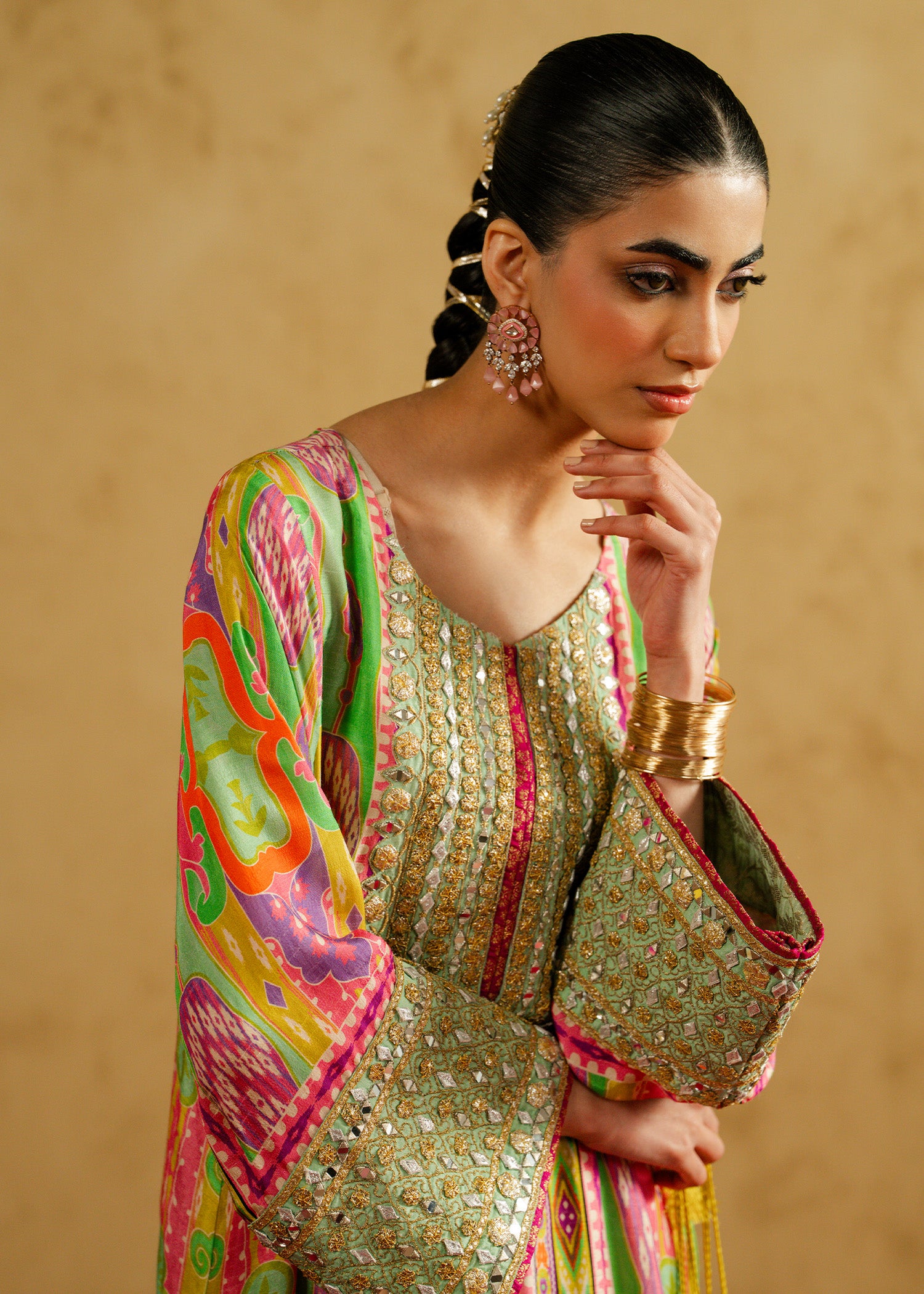 At MAHGUL, we strive to present the colors of our outfits as accurately as possible on our website. However, please be aware that slight variations may occur due to factors like fabric dye characteristics, weather during the dyeing process, and differences in viewing screens and lighting conditions.Additionally, handwoven fabrics may feature natural darker threads and unique marks, which are part of their charm and authenticity. These variations are not blemishes, rather they highlight the beauty of handcrafted products.