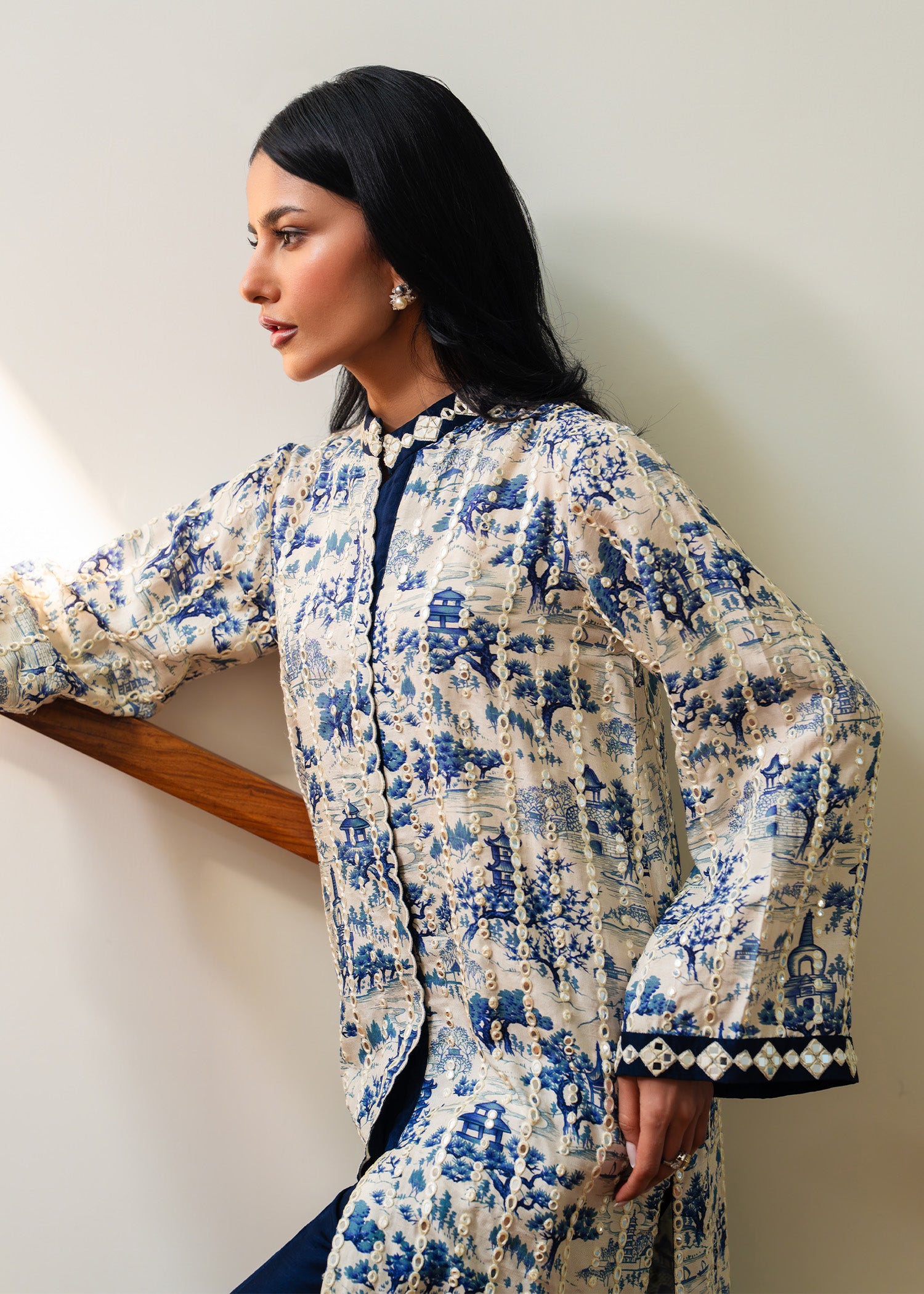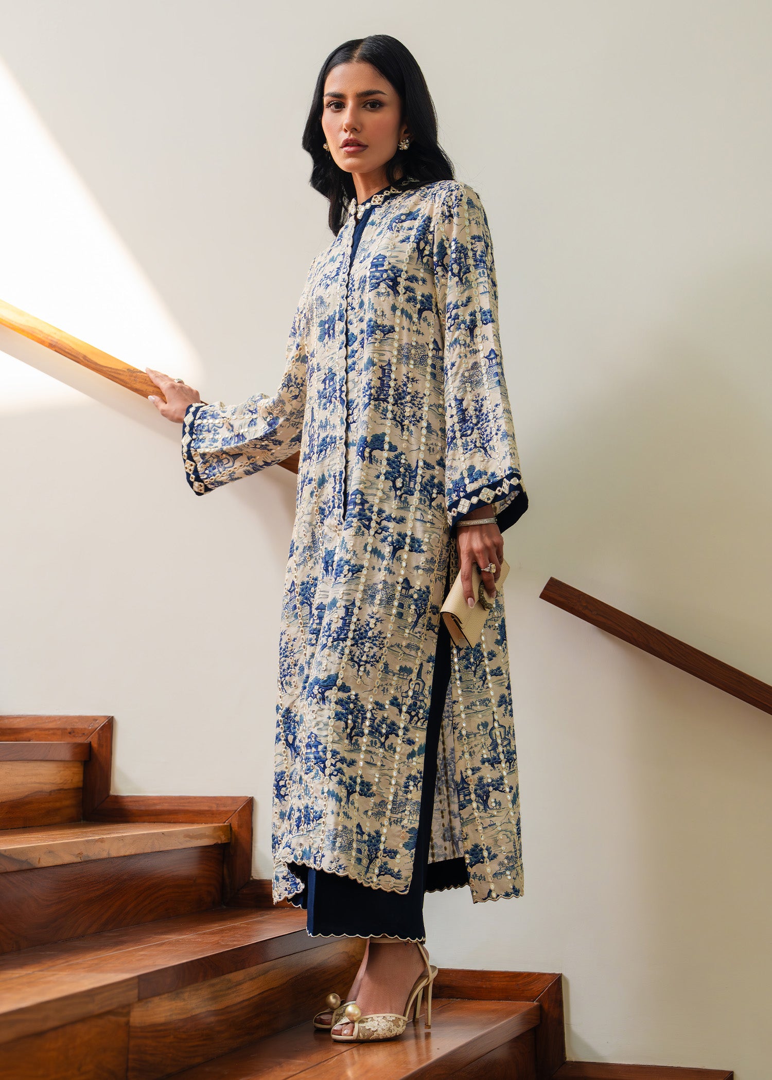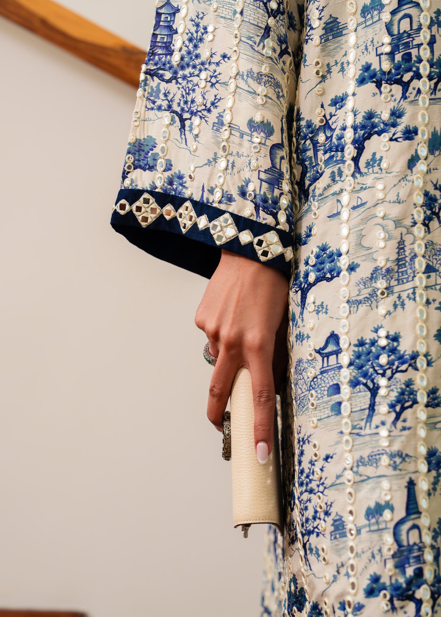 Seraphine is a celebration of serenity and style. Crafted in white Korean silk, the kurti and trousers drape effortlessly, creating a silhouette that is at once classic and contemporary. Ideal for festive occasions or elegant gatherings, this ensemble elevates everyday luxury into a statement of grace.